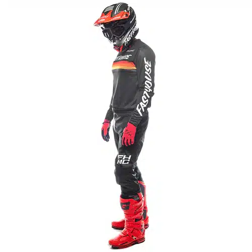חליפת הרכיבה כוללת חולצת Fasthouse Carbon Force בצבע שחור עם מבנה קל משקל מבד פוליאסטר מלא.